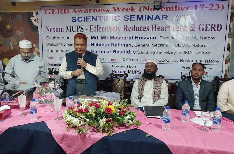 জিইআরডি সচেতনতা সপ্তাহ উপলক্ষে আজ শুক্রবার স্থানীয় একটি রেস্তোরাঁয় বাংলাদেশ ডিপ্লোমা মেডিকেল এসোসিয়েশন নাটোর জেলা শাখা এই সেমিনার আয়োজন করে।